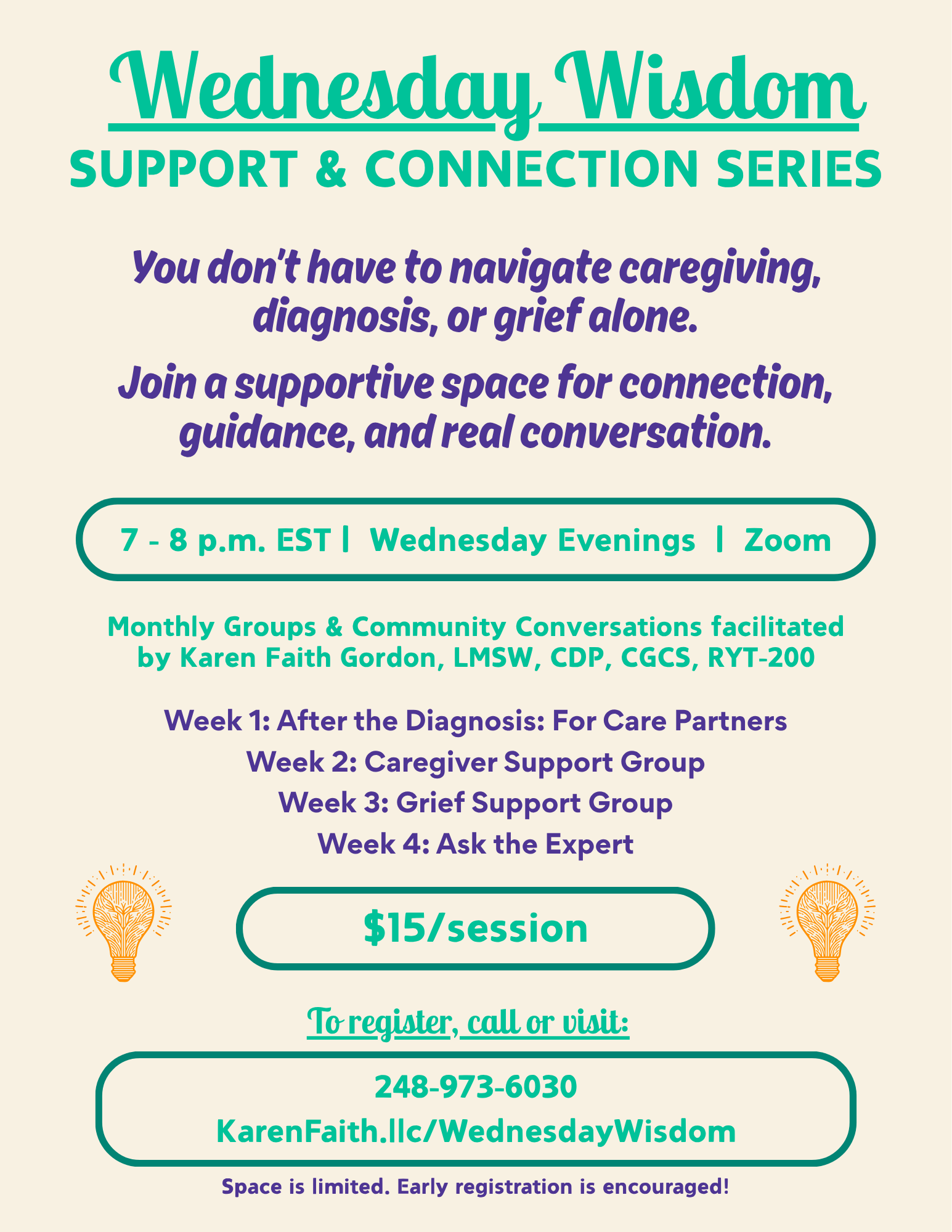 Wednesday Wisdom invites you to participate in weekly groups every month, each with its own focus.